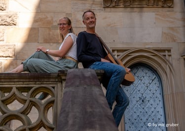 Den Gesang untermalen wir akustisch auf der Gitarre, manchmal auch ergänzt um Querflötensoli, Pianoharmonien und Cajonbeats… Dabei legen wir uns nicht auf eine Stilrichtung fest,